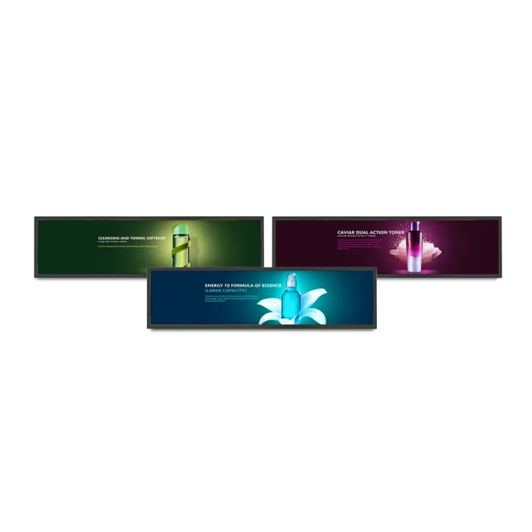LCD LED Bar, standart dijital ekranlardan farklı olarak uzun ve dar bir yapıya sahip ekranlardır. Bu ekranlar, özellikle raf sistemlerine entegre edilebilen ve geniş alanlarda etkili bir şekilde bilgi sunabilen çözümler sunar. Süpernet’in LCD LED Bar çözümleri, yüksek çözünürlük ve enerji verimliliği ile dikkat çeker.